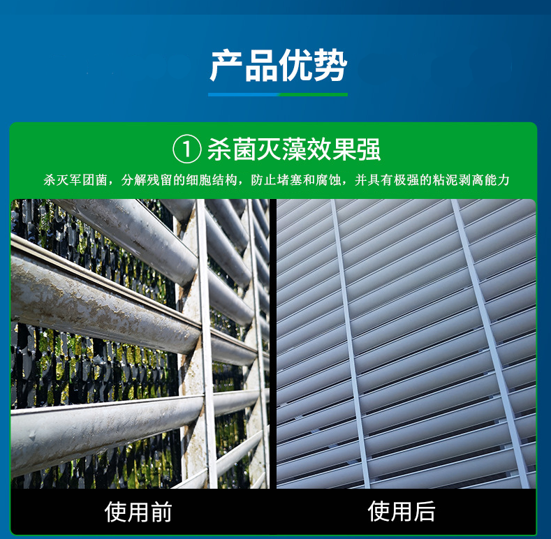 廣泛用於循環冷卻水係統、冷卻塔填料糖心LOGO原创视频在线观看生物粘泥、中央空調冷卻水、冷凍水水處理、油田注水係統管路的殺菌滅藻和生物粘泥剝離疏通,適合於換熱器、冷凝器的生物粘泥軟垢糖心LOGO原创视频在线观看和生物粘泥引起的管道堵塞的疏通。